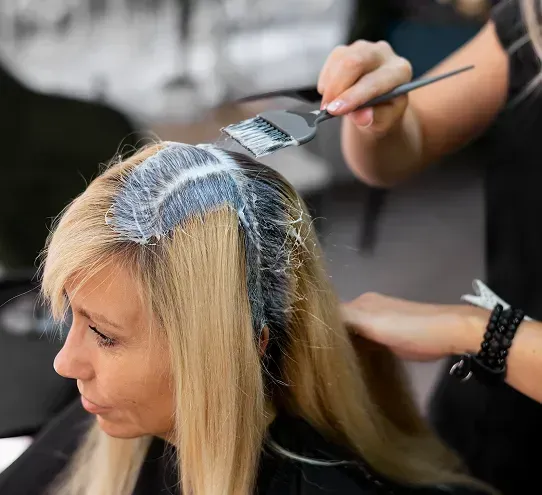 Highlights, foils, or balayage are applied with precision to create your chosen look.